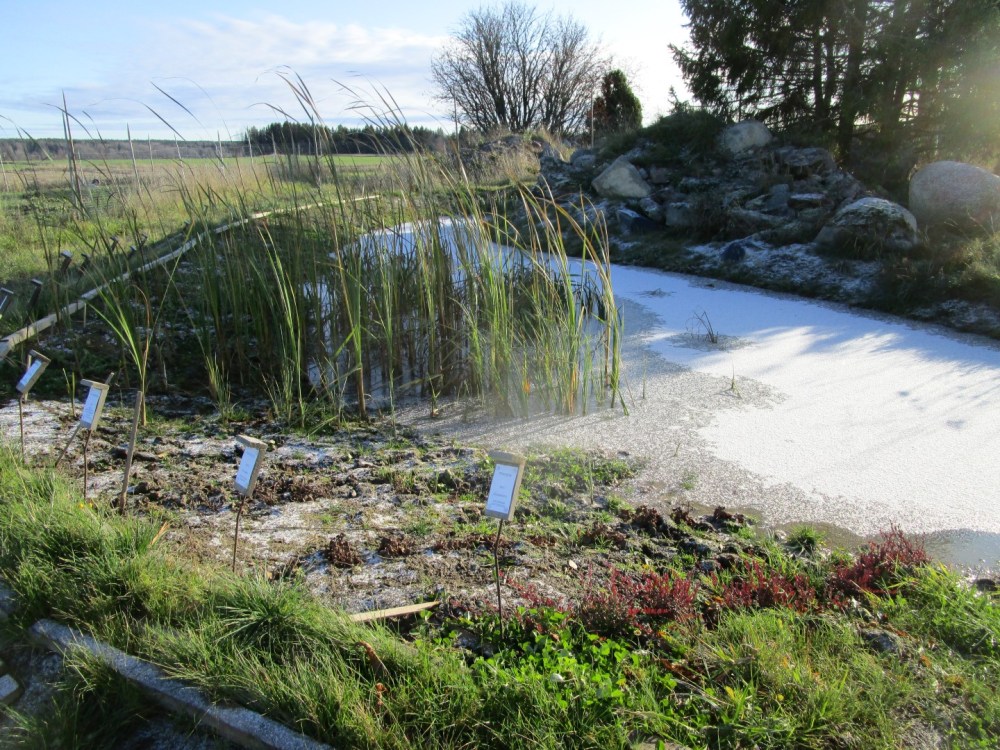 Vilka växter finns det i våtmarken? Se listan på sidan om demonstrations odlingen.