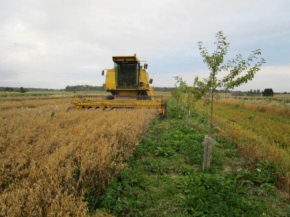 Overall it was easy to continue with the seeding of different organic crops in between the rows of trees and bushes. It was also easy to plant and support the trees and bushes as well as install and use the drip irrigation system. However, it is necessary to weed the areas between the trees and bushes at least three times in the season while establishing the cropping system. It will be interesting to see if this alley cropping system can increase the amount of carbon storage, lower nutrient leackage and improve soil fertility. We hope that in future this system can provide a good economy, as well as strengthen the life supporting systems in the farm.