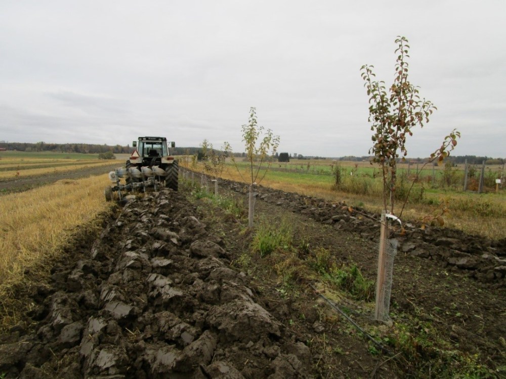 Plowing alongside the growing trees in October.